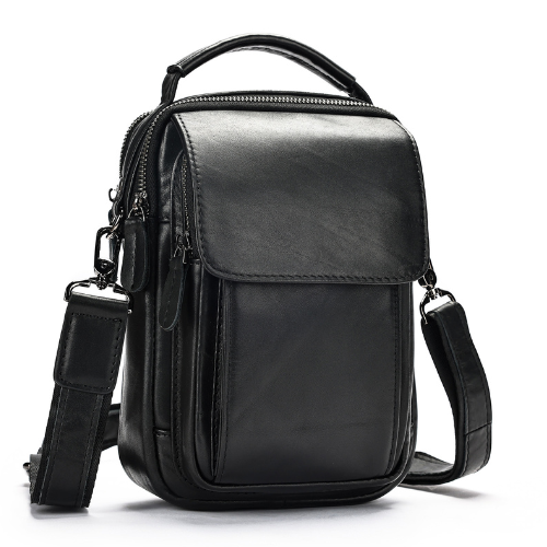Bolso crossbody, elaborado en cuero vacuno. Diseño clásico y funcional. Es un bolso ideal para transportar objetos personales de manera organizada (celular, llaves, documentos y dispositivos electrónicos pequeños).