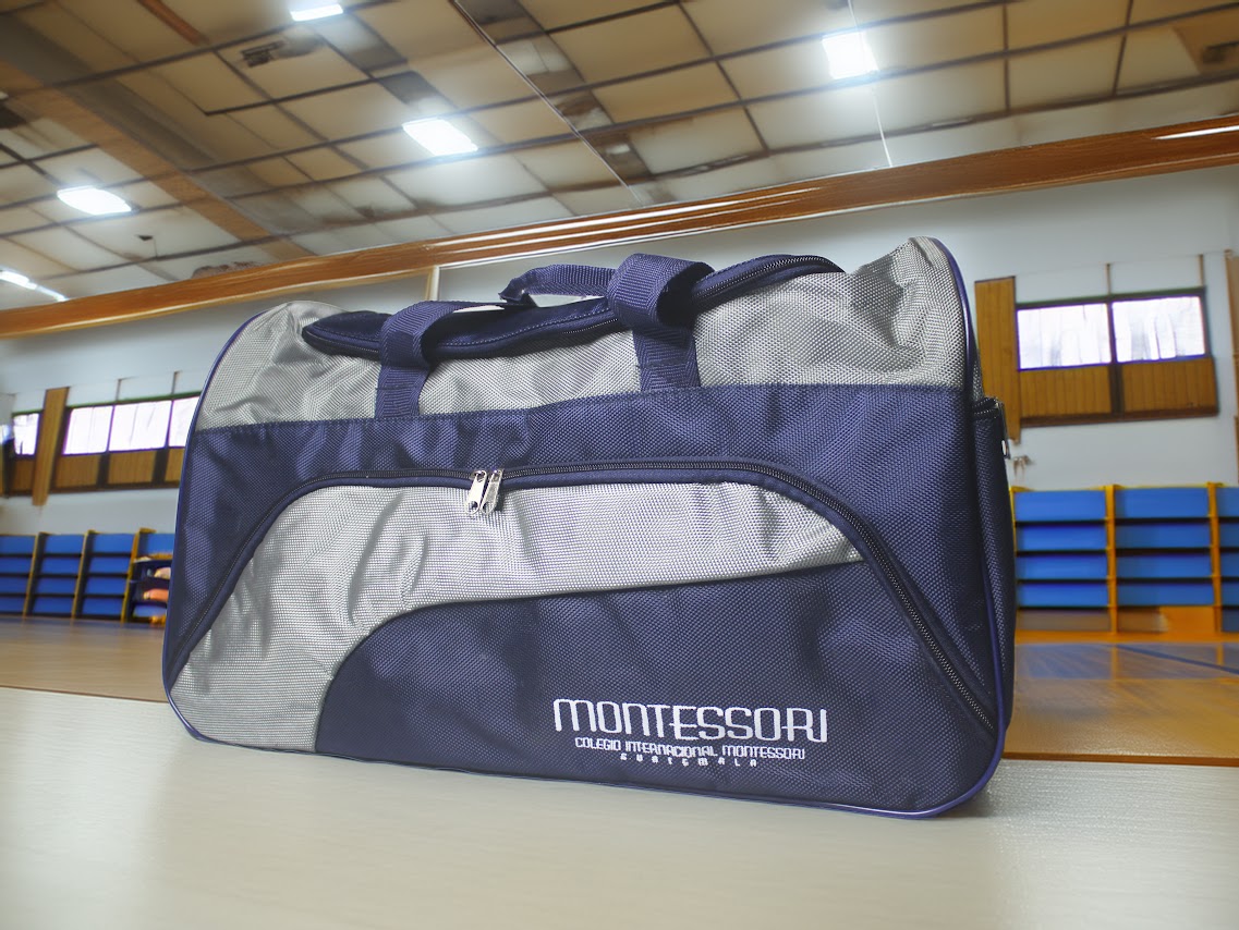 Maletín deportivo con compartimiento principal con cremallera de apertura tipo “u”, bolsillo para ropa o zapatos. Bolso externo con malla y asa corta para mano y asa larga ajustable para hombro.