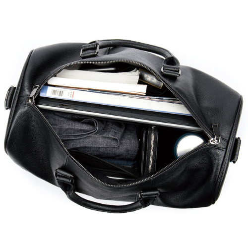 Bolso de gimnasio o fin de semana confeccionado en cuero de color negro lo que le da un aspecto elegante. Cuenta con compartimientos para zapatos en el lateral derecho. Uso ideal para viajes cortos como equipaje de mano para vuelos o escapadas fin de semana.